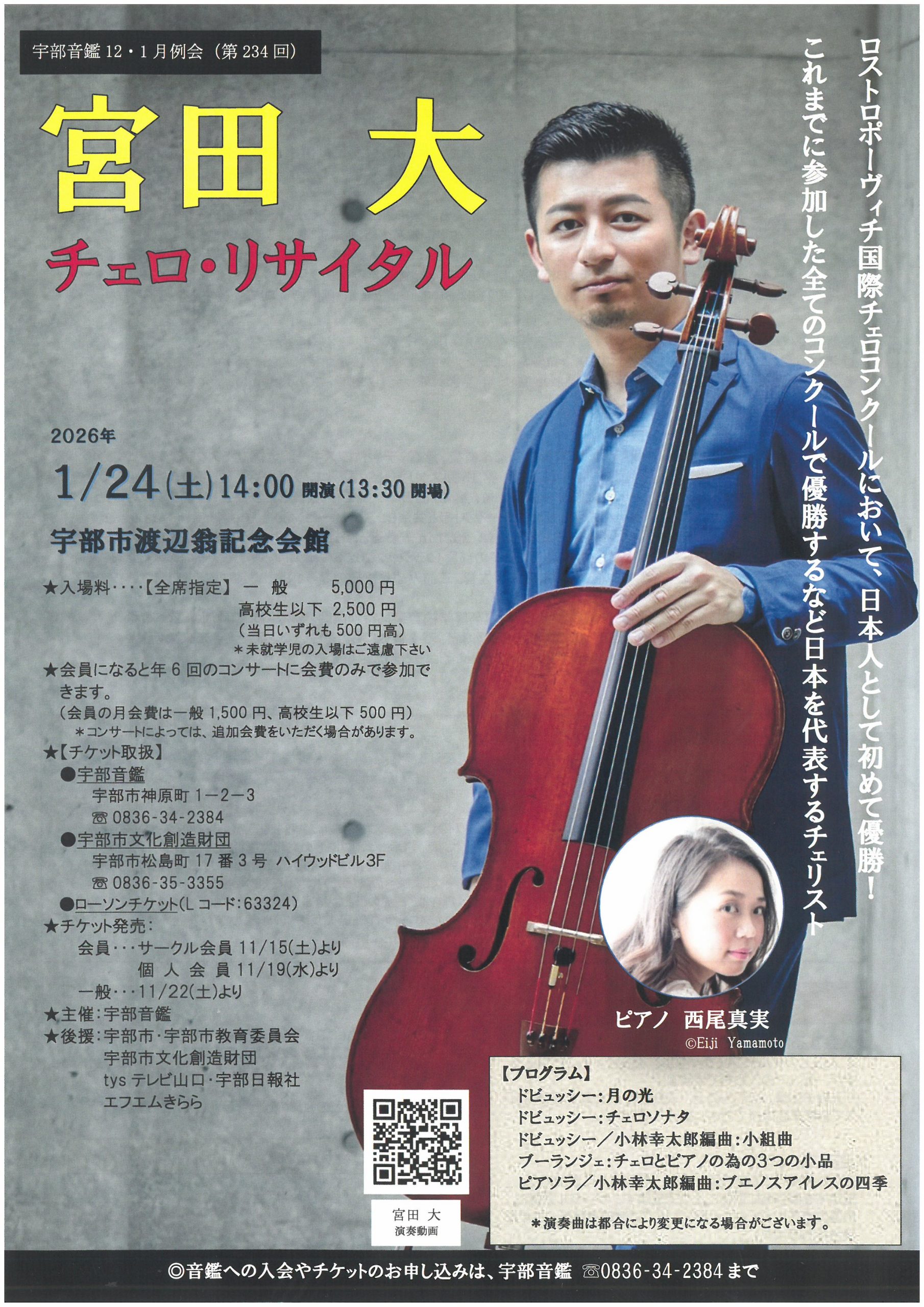| 主催・問合せ先 | 主催:宇部好楽協会 予約:問合せ:宇部市文化創造財団 TEL:0836-31-7373 (9:00~16:30 火曜定休) |