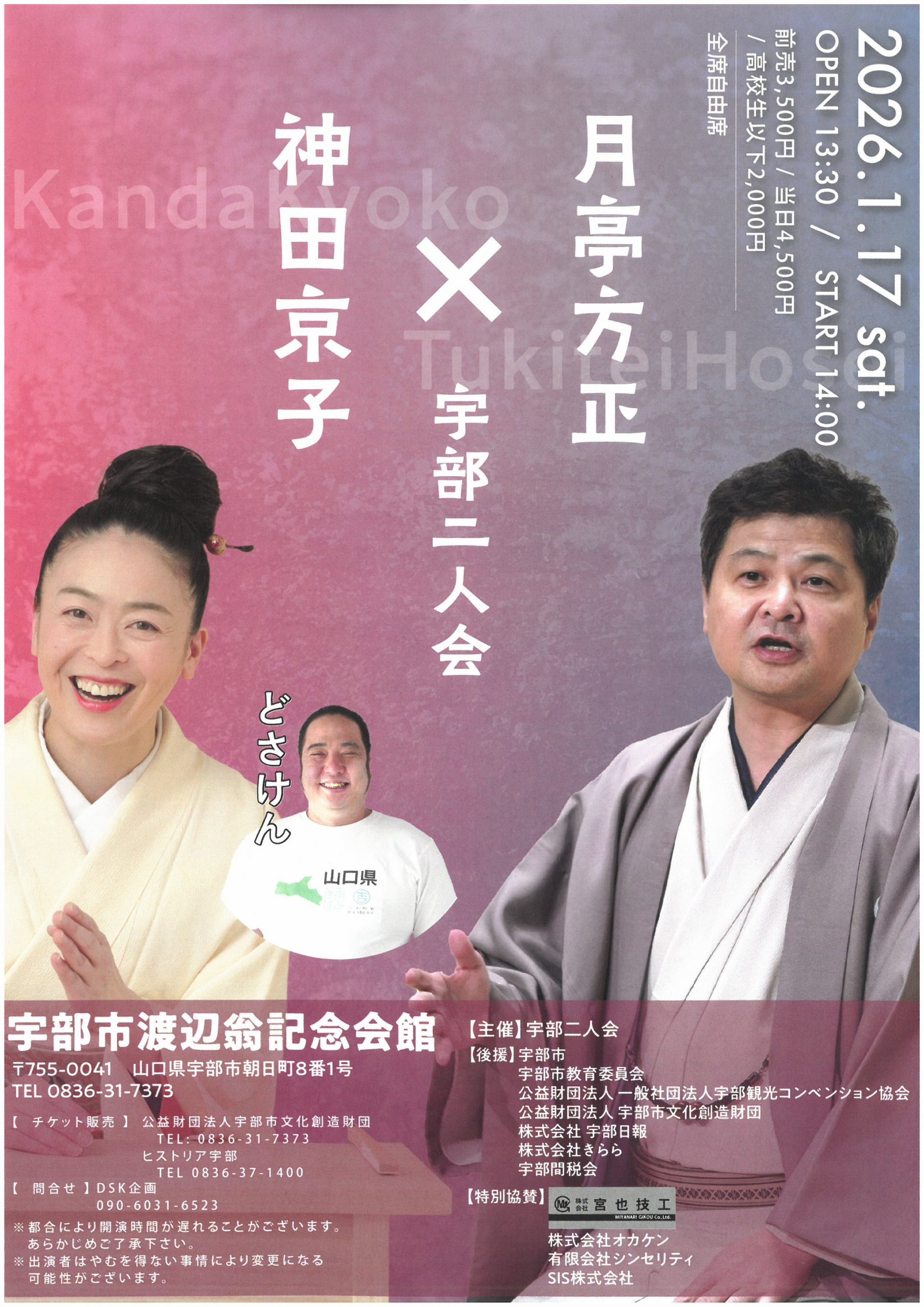 | 主催・問合せ先 | 主催:宇部二人会 問合せ:DSK企画 090-6031-6523 |